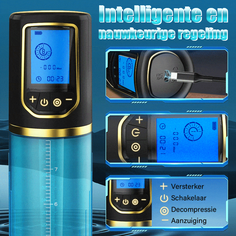 Dankzij de transparante ABS-cilinder kunt u zien hoe uw gereedschap wordt gekalmeerd, opgeblazen en bevredigd door de automatische vacuümzuiging. Door uw penis regelmatig te trainen met 8 krachtige zuigpatronen, zult u beseffen hoe sterk uw penis is!