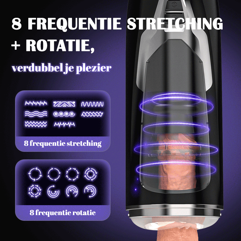 1. De nieuwe Warrior Swirl 3-in-1 automatische cup met 8-frequentie stretch en draaifunctie in één, die het genot verdubbelt!