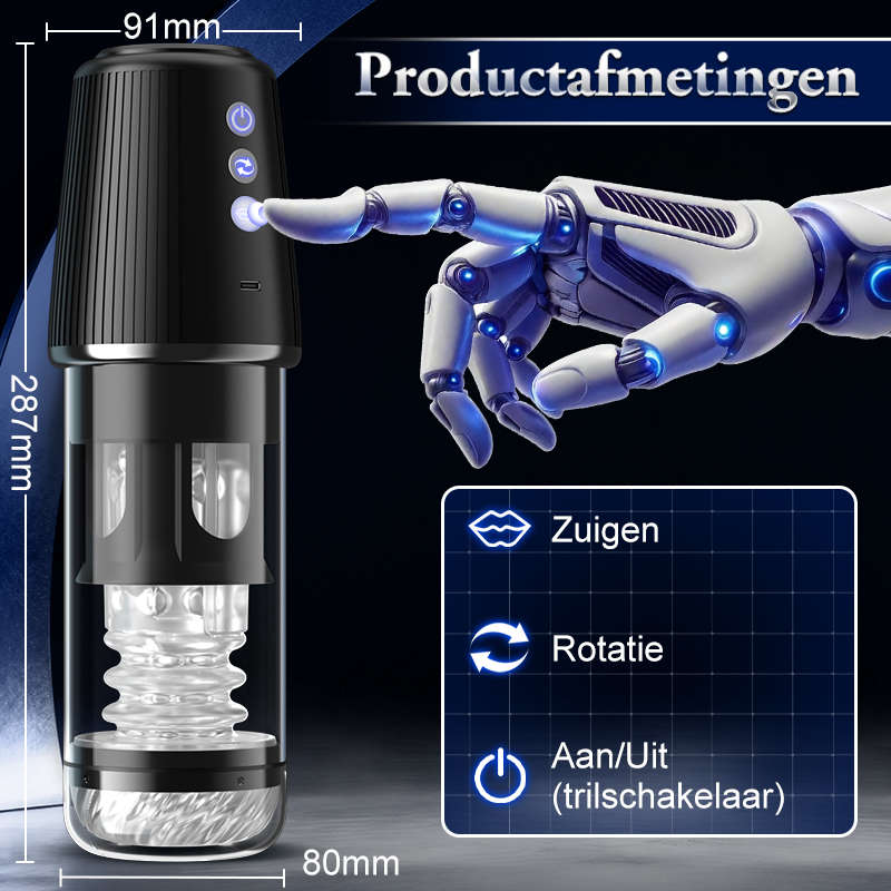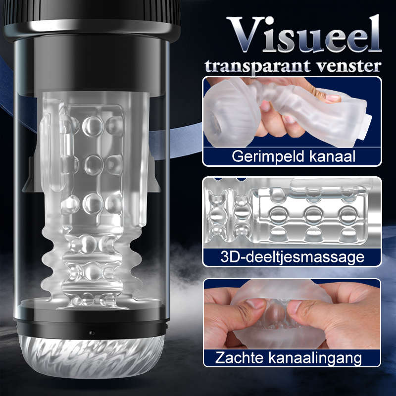 Biedt diverse plezierige ervaringen, waaronder 5 rotatiestanden, 5 zuigstanden, 7 vibratiestanden, luchtcompressie, 3D-deeltjesstimulatie en een transparant venster.