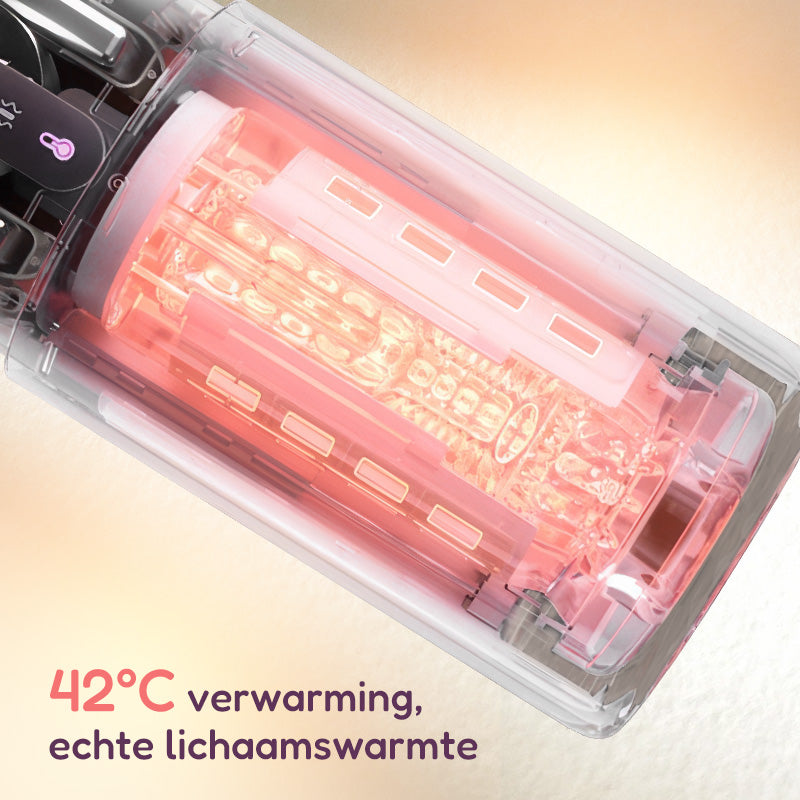 - Het ingebouwde verwarmingselement simuleert uw lichaamstemperatuur, bereikt snel de gewenste temperatuur en brengt u onmiddellijk in een diepe staat van genot – voor een ongeëvenaarde, realistische ervaring.
