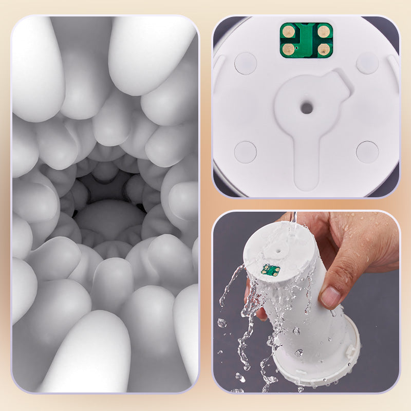 - De binnenvoering heeft een 3D-massagedesign met een korrelige structuur. Dit stimuleert continu elk deel van de huid en zorgt voor een ongeëvenaard gevoel van geborgenheid en wrijving. Elke uitrek- en samentrekkingsbeweging en de vibratiestand vullen elkaar perfect aan, verlevendigen elk detail en garanderen maximaal comfort en ultieme voldoening.